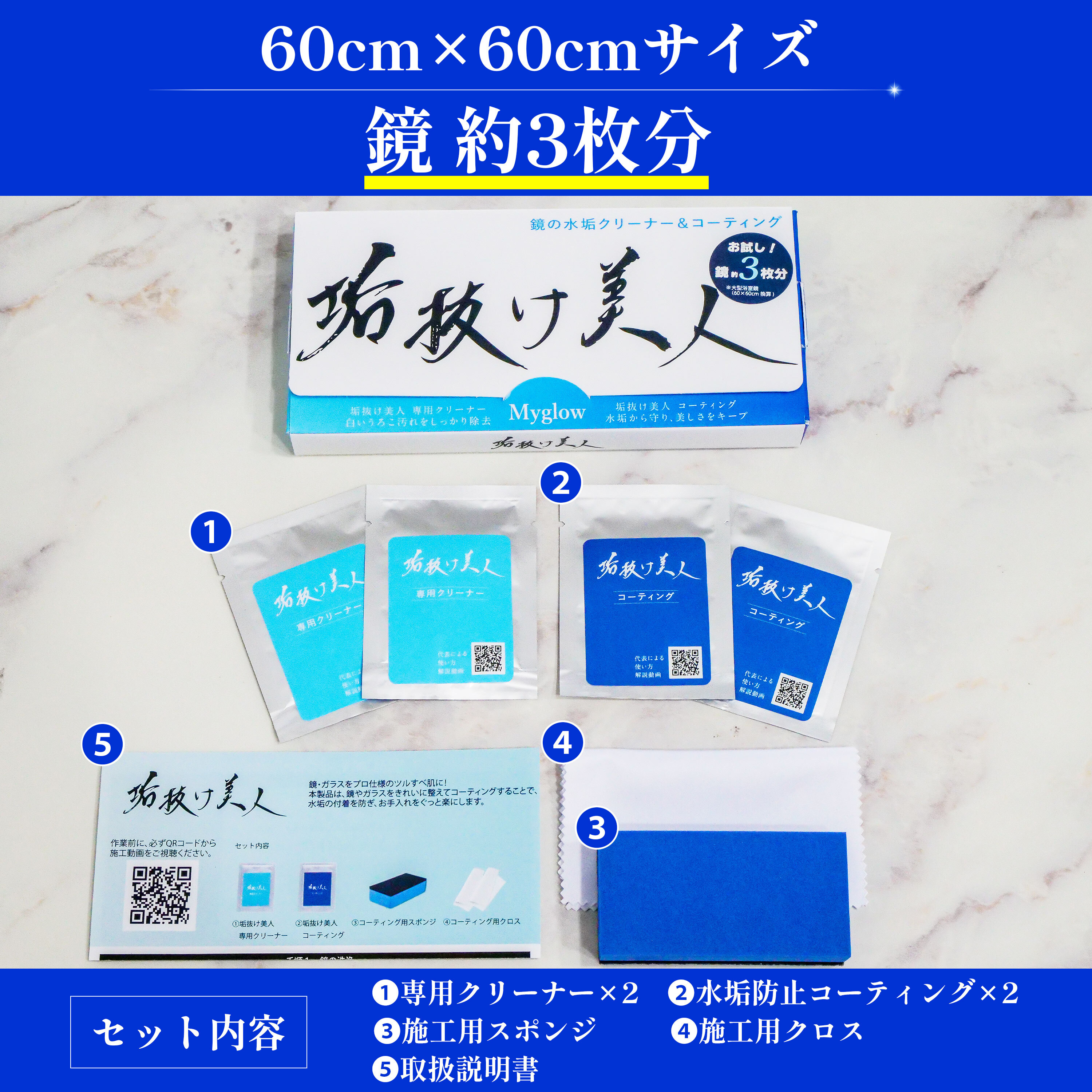 セット内容:専用クリーナー3g×2・水垢防止コーティング剤1ml×2