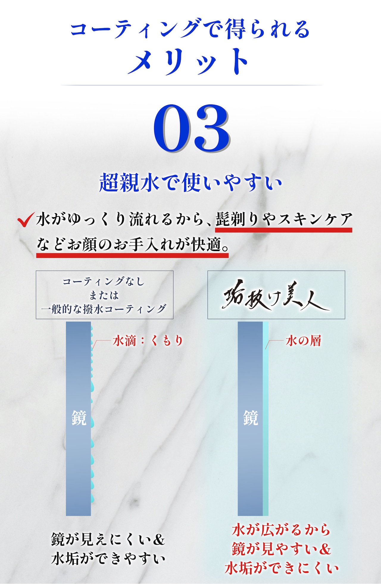 超“親水”コーティングで水垢を寄せつけない